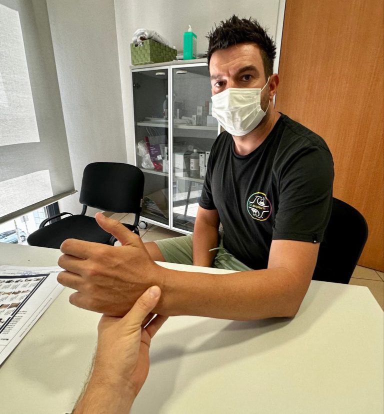 Así que los traumatólogos de la clínica donde habían resuelto exitosamente sus lesiones de las piernas decidieron remitirlo a mi consulta porque consideraron que era la mejor opción para resolver sus lesiones de las muñecas.